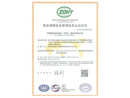 職業(yè)健康與安全管理體系認(rèn)證證書