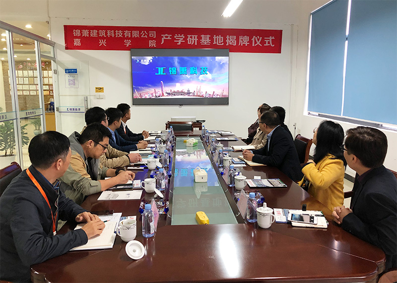 10月21日,錦蕭建筑科技有限公司與嘉興學院產學研合作基地揭牌儀式在公司總部會議室如期舉行。
