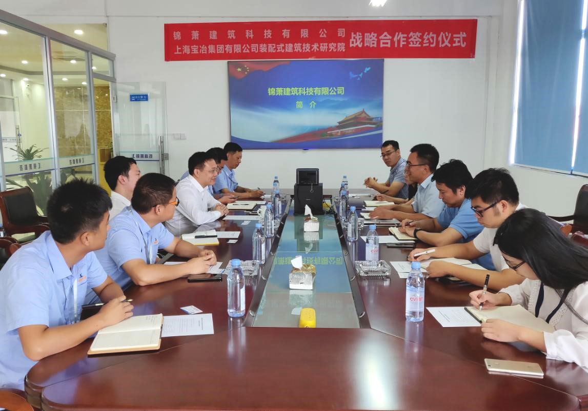 2018年8月28日下午,公司與上海寶冶集團有限公司裝配式建筑技術研究院戰略合作簽約儀式順利舉行。寶冶集團裝配式建筑技術研究院首席研究員劉威,錦蕭建筑科技有限公司董事長李軍等雙方人員共同參加了簽約儀式。