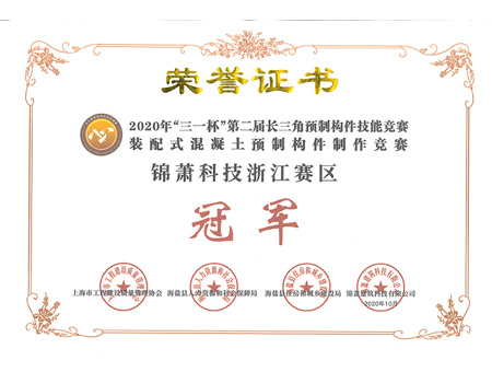 浙江省“建工杯”競賽構件制作團體三等獎