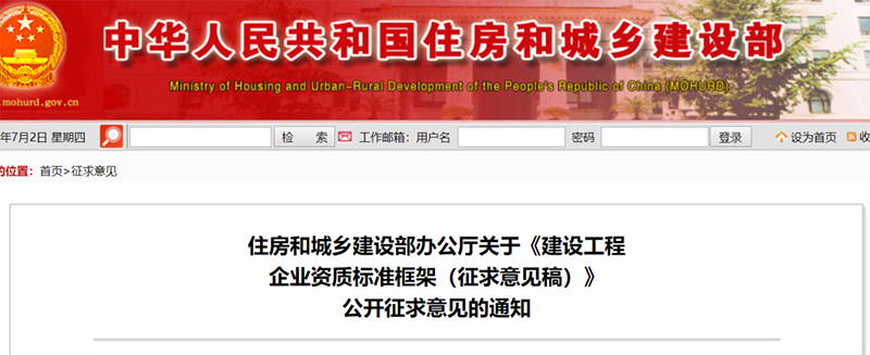 2020年7月2日,住建部發布《建設工程企業資質標準框架(征求意見稿)》。