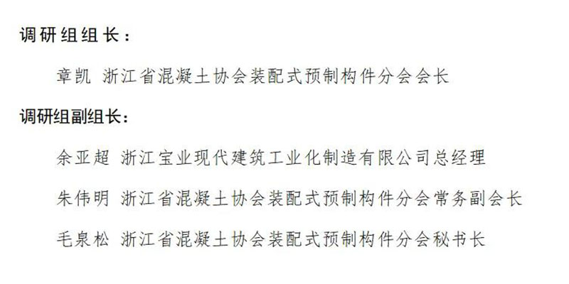 應邀參加本次會議的領導和嘉賓有浙江省建筑科學設計研究院有限公司總經理趙宇宏教授級高工、浙江省混凝土協會副會長徐國孝教授級高工、浙江省混凝土協會顧問陳敏教授級高工、杭州市建筑業協會新型建筑工業化分會秘書長應華香、寧波市建筑業協會裝配式建筑分會副秘書長邵茹、紹興市建筑產業現代化發展聯盟秘書長何余良先生、溫州市綠色建筑與建筑工業化促進會會長張武,以及浙江寶業現代建筑工業化制造有限公司、浙江中民筑友科技有限公司、浙江廣天構件股份有限公司、臺州普立德建筑科技有限公司、浙江新邦遠大綠色建筑產業有限公司、錦蕭建筑科技有限公司、浙江三一筑工科技有限公司、麗水金湯建筑安裝科技有限公司、浙江天晟建材股份有限公司、浙江省建材集團浙西建筑產業化有限公司、舟山恒眾建筑科技發展有限公司等11家企業的負責人。