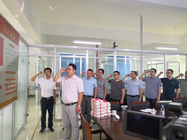 隨后,公司黨支部書記、副總經(jīng)理沈秋良帶領(lǐng)全體黨員重溫入黨誓詞,街道黨委委員繆李偉向公司黨支部全體黨員贈(zèng)送黨徽和十九大學(xué)習(xí)資料,鼓勵(lì)全體黨員大力弘揚(yáng)“紅船精神”,進(jìn)一步引導(dǎo)黨員同志不忘初心,牢記使命,砥礪前行。