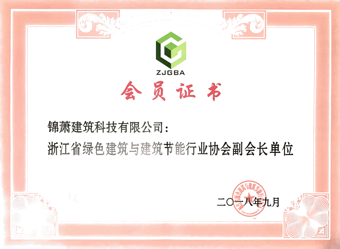 浙江省綠色建筑與建筑節能行業協會是由浙江省建設科技推廣中心、浙江省建筑科學設計研究院和浙江省建筑設計研究院等單位共同發起,旨在推動浙江省綠色建筑與建筑節能行業健康有序發展。此次證書的獲得,標志著錦蕭科技產品在綠色、環保、節能方面走在了行業前沿,同時也是對公司始終堅持綠色、環保發展戰略的肯定。
