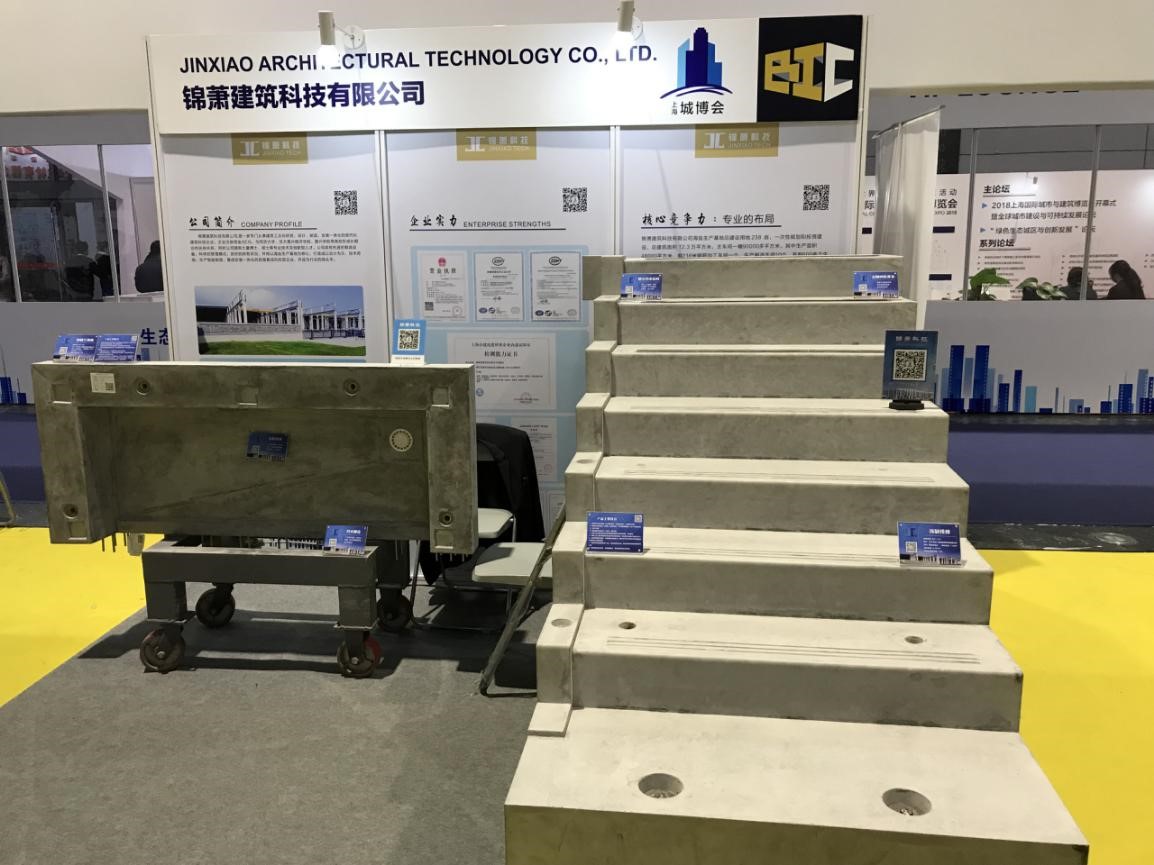 兩次展會(huì),錦蕭科技以最強(qiáng)團(tuán)隊(duì)陣容參與亮相。走進(jìn)錦蕭展區(qū),參觀人氣爆棚,國(guó)內(nèi)外客商絡(luò)繹不絕。公司以混凝土預(yù)制構(gòu)件展品--預(yù)制樓梯、預(yù)制空調(diào)板為媒介,通過廠區(qū)沙盤展現(xiàn),背投宣傳片展映,向所有參觀的領(lǐng)導(dǎo)和觀眾展示了公司在裝配式建筑領(lǐng)域所擁有的技術(shù)實(shí)力及強(qiáng)悍的生產(chǎn)能力。