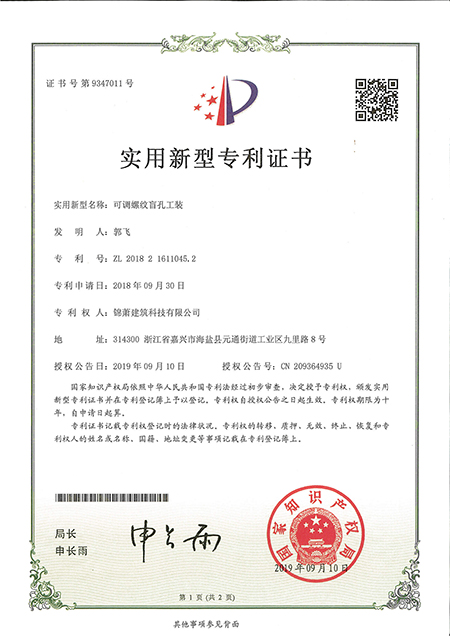 專利證書(shū)--可調(diào)螺紋盲孔工裝
